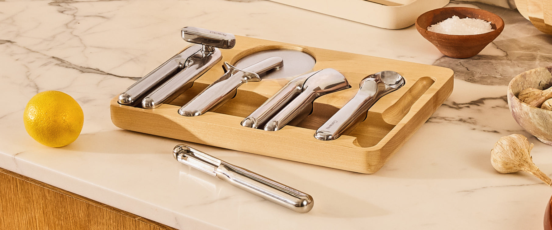 Hand wash all knives and utensils with warm, soapy water to remove any dirt or debris left over from the manufacturing and shipping process. -